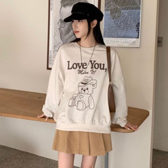 주즈앤 라운드넥 쭈리 곰돌이 프린팅 맨투맨