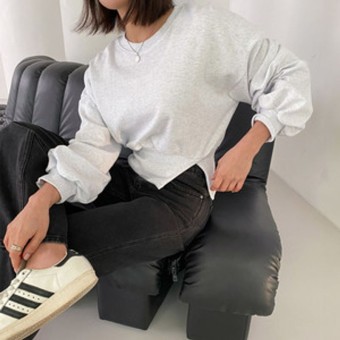 디아로 라운드넥 세미크롭 옆트임 맨투맨