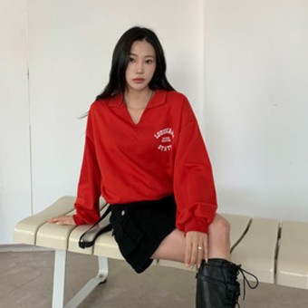 뎀퓨린 반오픈 카라넥 미니 레터링 오버 맨투맨