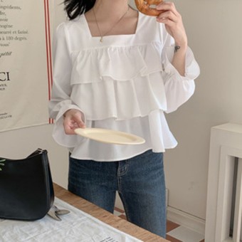 매블린 스퀘어넥 프릴 백리본 블라우스