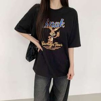 치롤아 코튼 스낵 프린팅 오버핏 반팔 티셔츠