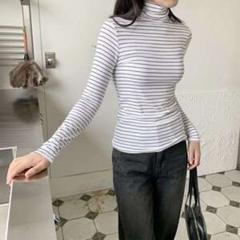 럴래인 단가라 슬림 폴라 티셔츠