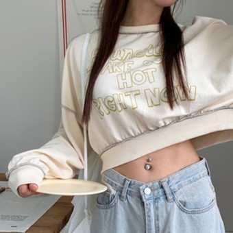 [세일] 나우오 레터링 스티치 오버 크롭 맨투맨