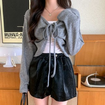 어렌블 브이넥 스트링 골지 긴팔 티셔츠
