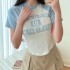 운나그 슬림핏 라운드넥 나그랑 배색 영문 프린팅 반팔 티셔츠
