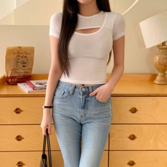 케렌트 꼬임 트임 슬림핏 라운드넥 반팔 티셔츠