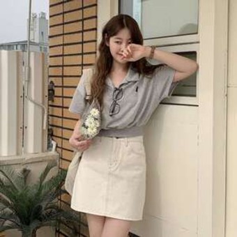수흘푸 토끼 자수 크롭 반팔 맨투맨