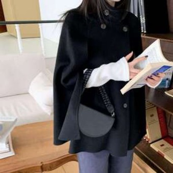(핸드메이드)투리으 하이넥 더블 버튼 케이프 울 코트